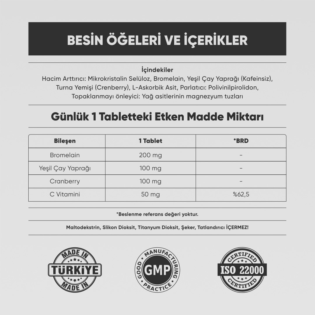 Cranberry, C Vitamini, Bromelain, Kafeinsiz Yeşil Çay